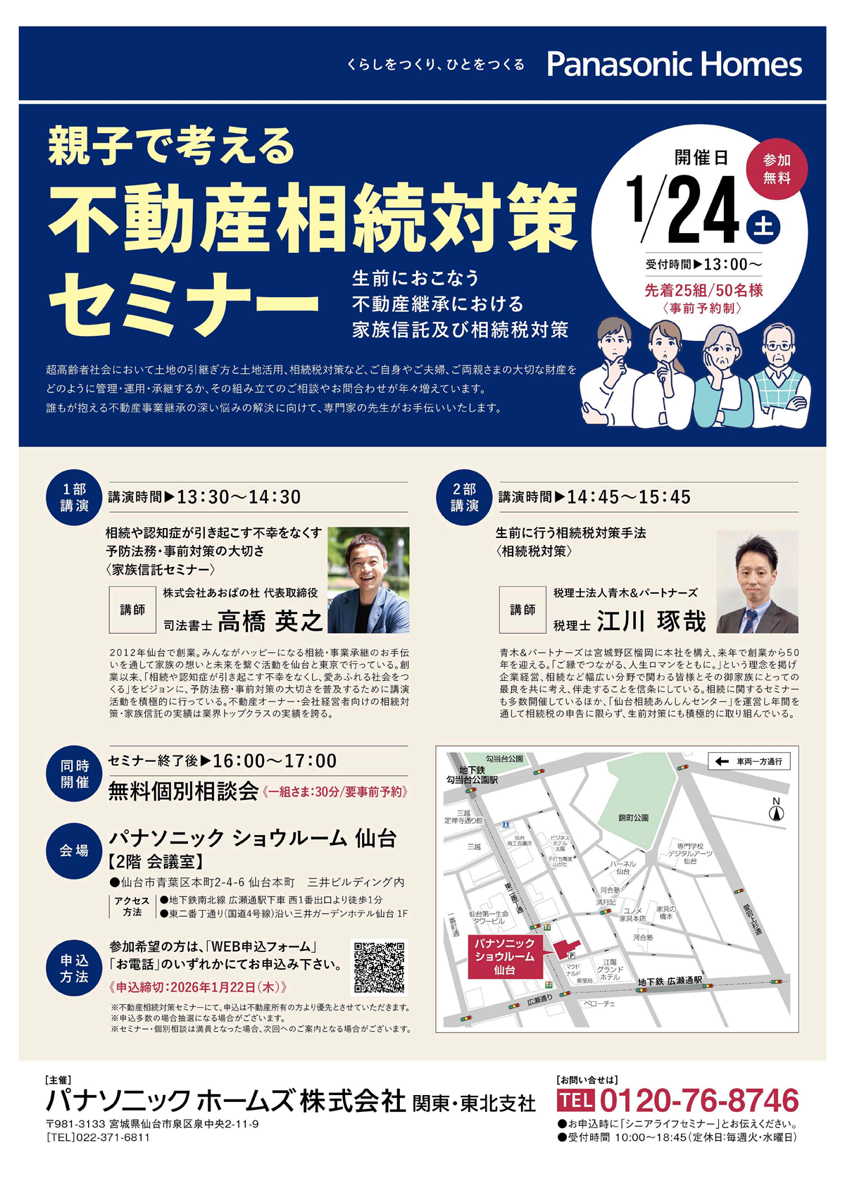 | 同時開催 | [セミナー終了後] 16:00~17:00 [内容] 無料個別相談会〈一組さま:30分/要事前予約〉 |